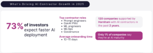 For AI specialists: demand remains high but the most in-demand contractors will be those who can work independently, communicate clearly, and deliver impact from day one.
